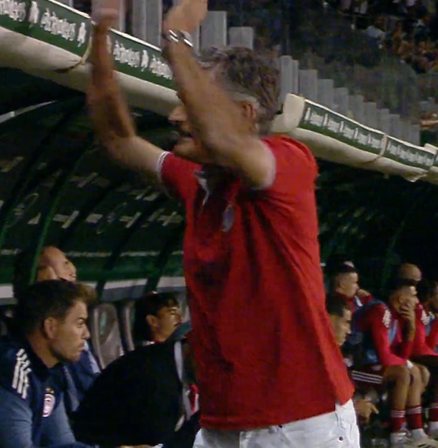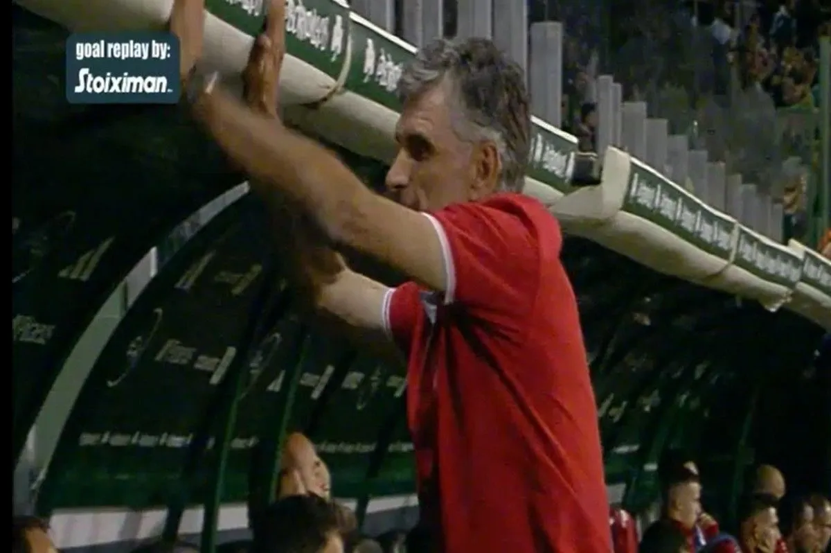 Αμέσως μετά το γκολ που πέτυχε ο Νιγηριανός φορ του Παναθηναϊκού, το πλάνο πήγε στον Χοσέ Λουίς Μεντιλίμπαρ που ήταν τρελαμένος και χτύπησε τον πάγκο, θέλοντας να ξεσπάσει.