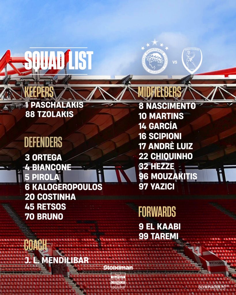 Ο Χοσέ Λουίς Μεντιλίμπαρ ανακοίνωσε τους παίκτες που θα έχει στη διάθεσή του στην εντός έδρας αναμέτρηση με τον Παναιτωλικό.