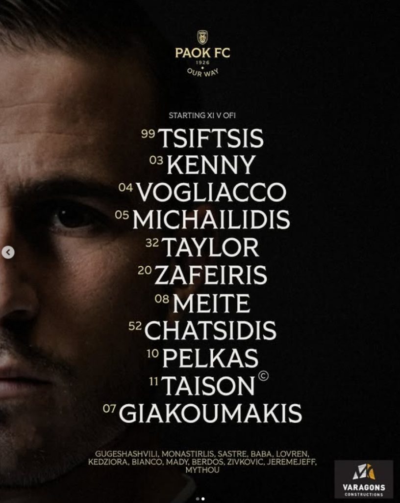 Η ενδεκάδα του ΠΑΟΚ με ΟΦΗ