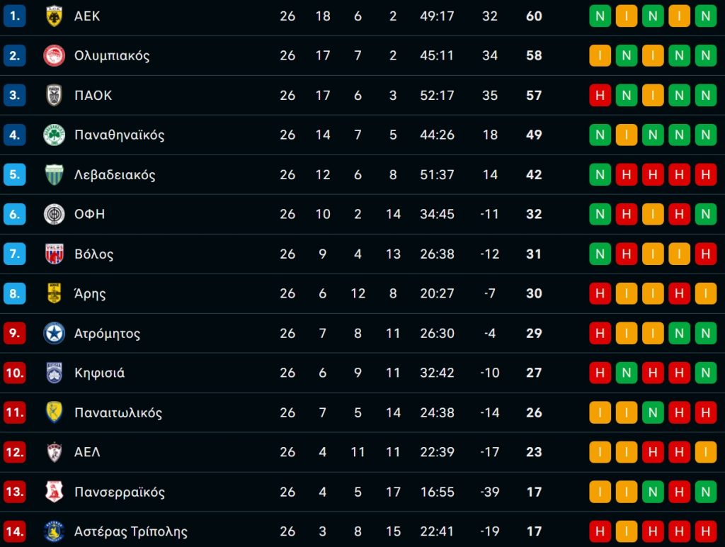 Stoiximan Super League: Δείτε την τελική βαθμολογία στην κανονική διάρκεια
