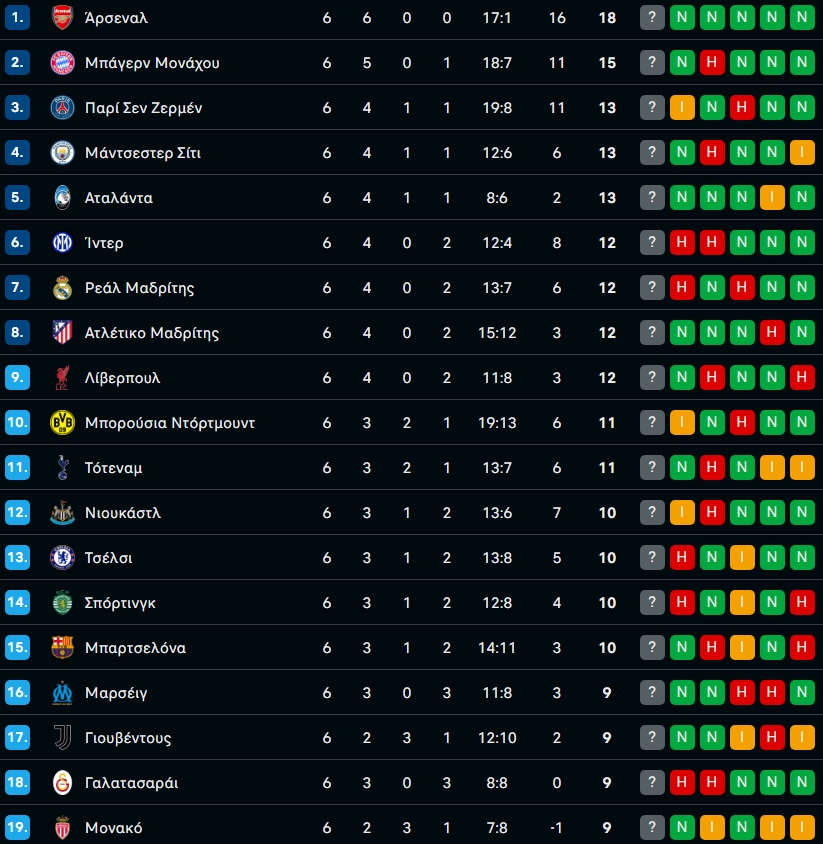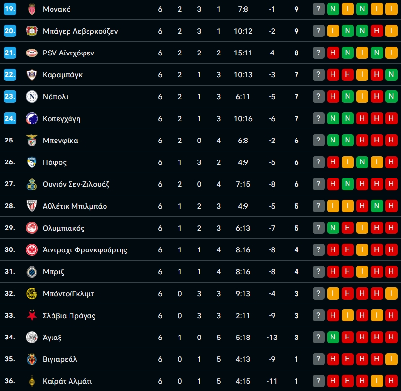 Η βαθμολογία της League Phase του Champions League μετά τα παιχνίδια της Τετάρτης - Σε ποια θέση βρίσκεται ο Ολυμπιακός