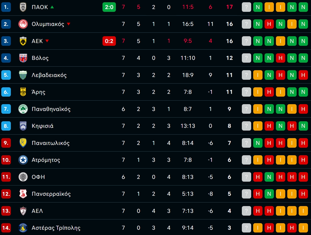 Η βαθμολογία της Stoiximan Super League μετά τη νίκη του ΠΑΟΚ επί της ΑΕΚ!