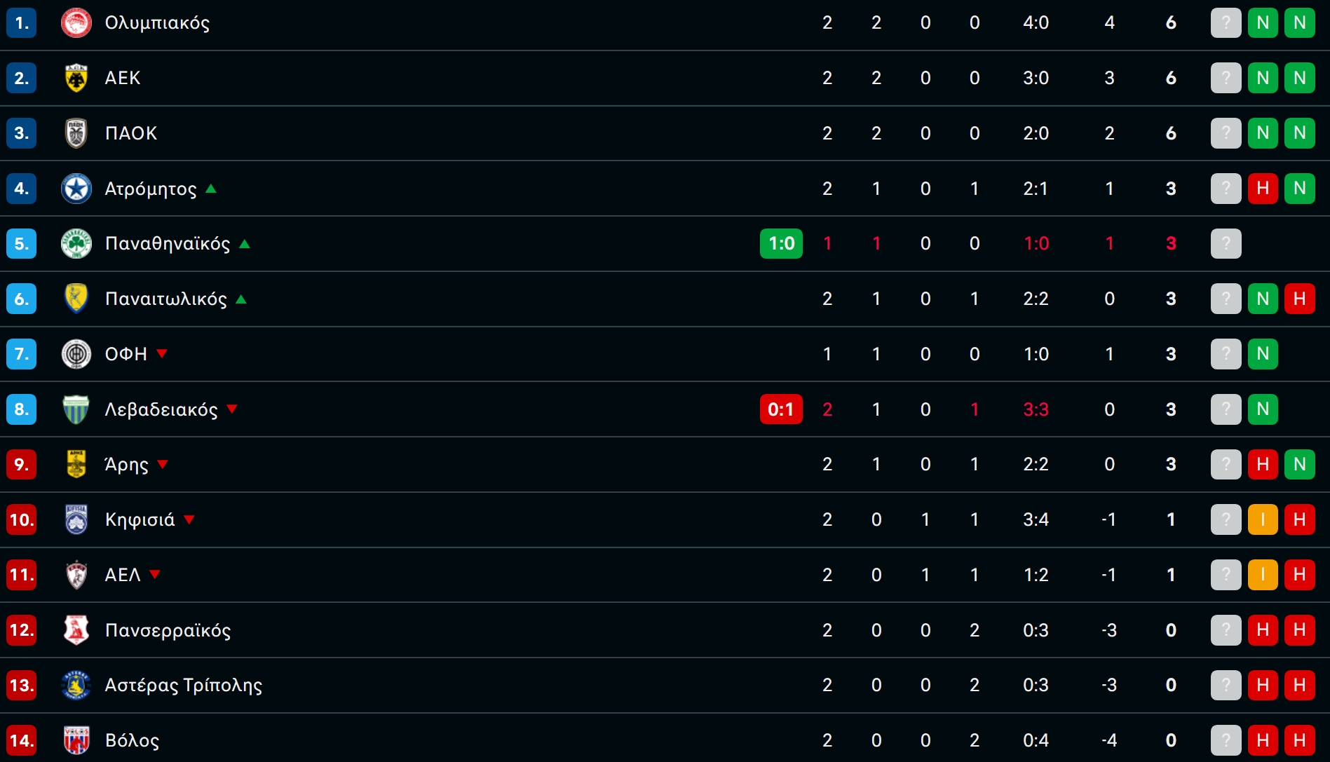 Δείτε τη βαθμολογία της Stoiximan Super League μετά τη νίκη του ΠΑΟΚ στον Ατρόμητο στην Τούμπα για τη 2η αγωνιστική.