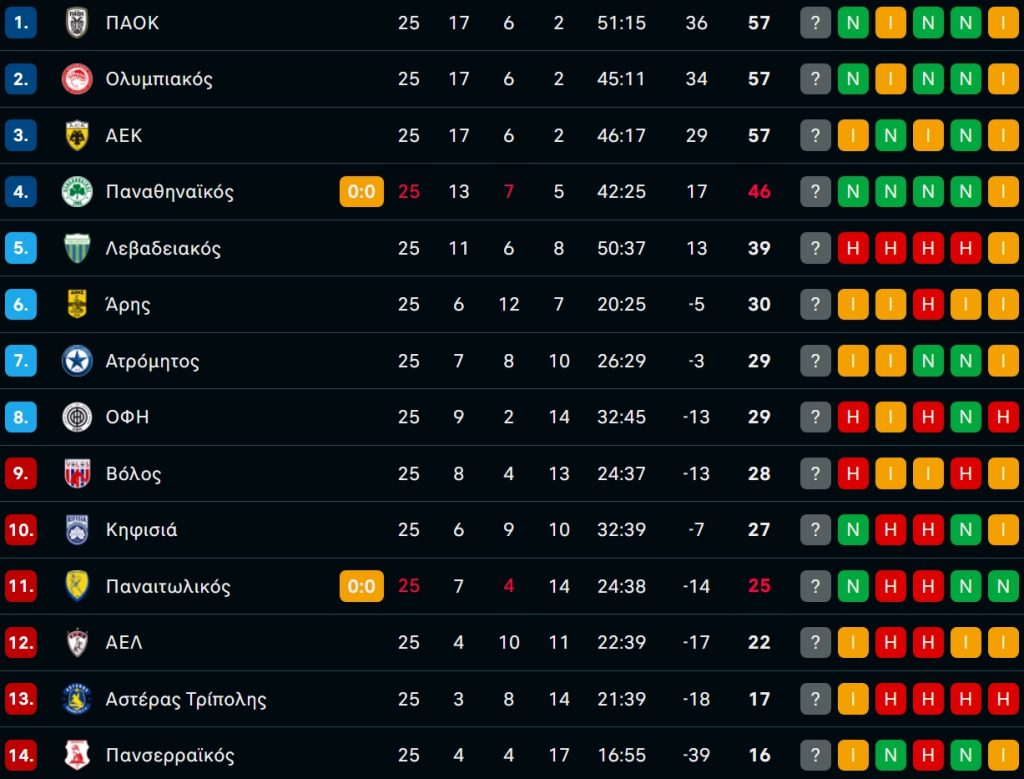 Η βαθμολογία της Stoiximan Super League μετά την ισοπαλία της ΑΕΚ με Ατρόμητο!