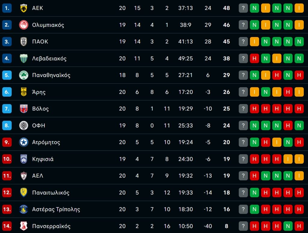 Η βαθμολογία της Stoiximan Super League μετά την ισοπαλία στο Άρης-ΠΑΟΚ!