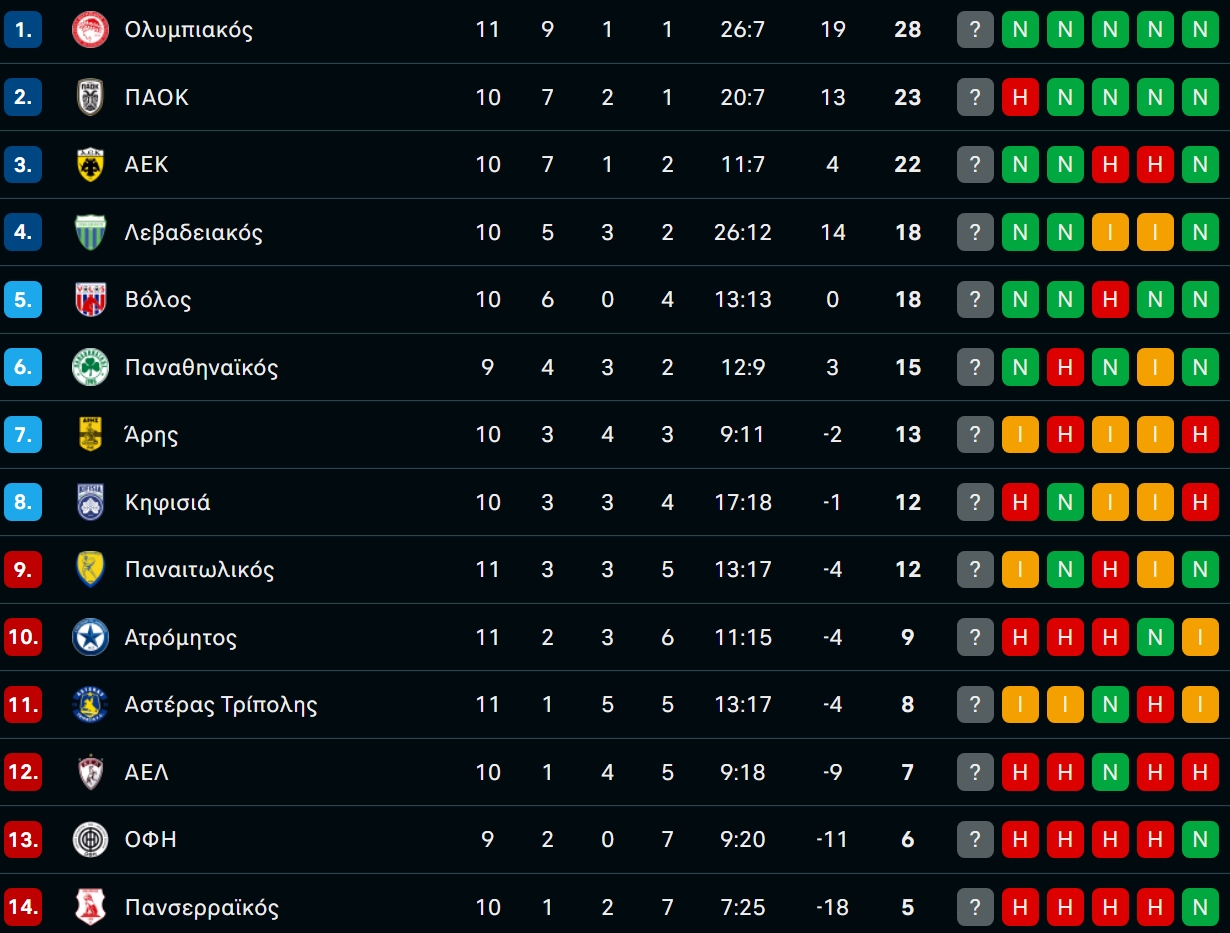Η βαθμολογία της Stoiximan Super League μετά την νίκη του Ολυμπιακού επί του Ατρόμητου με 3-0!