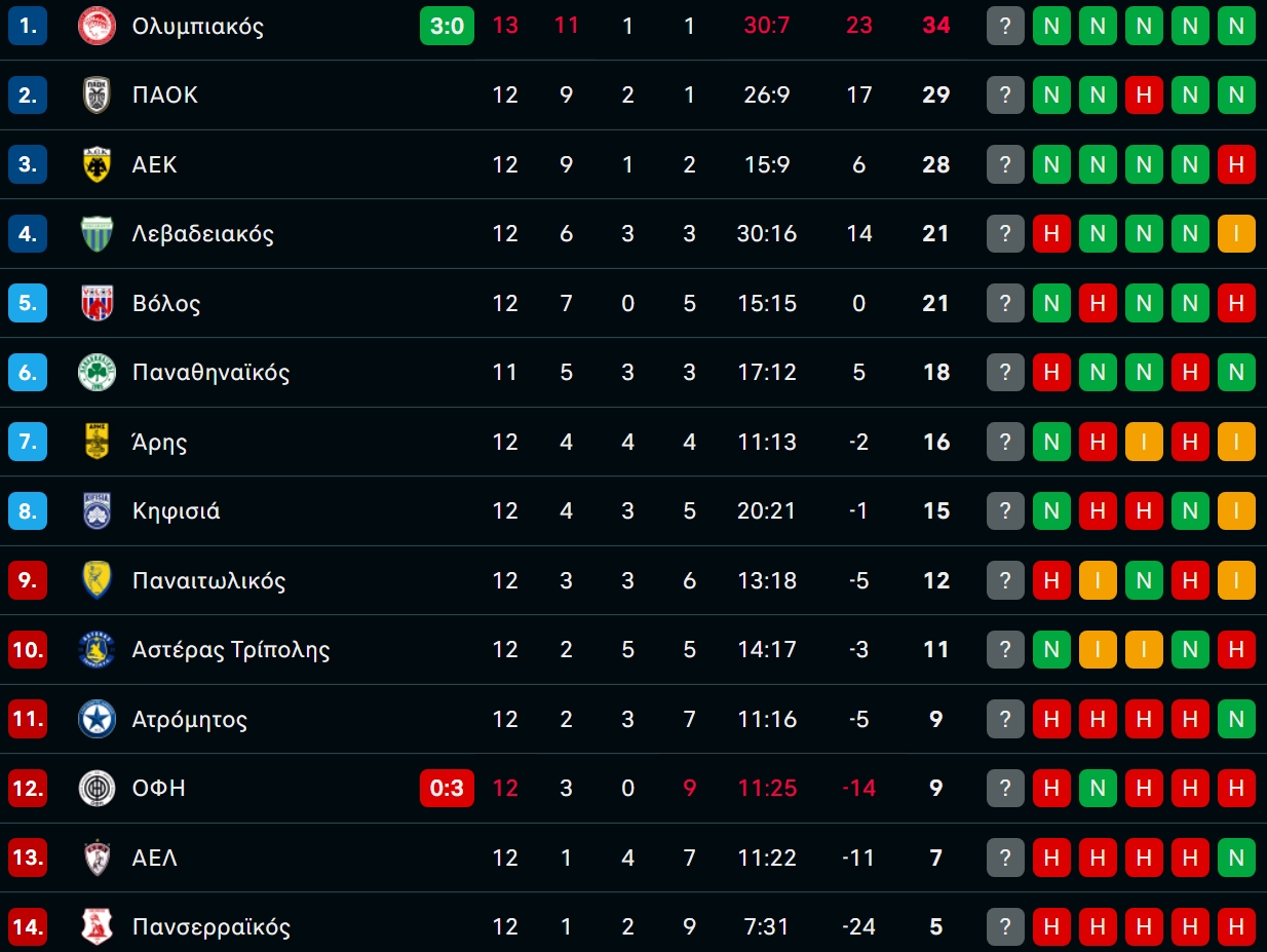 Η βαθμολογία της Stoiximan Super League μετά την νίκη του Ολυμπιακού επί του ΟΦΗ με 3-0