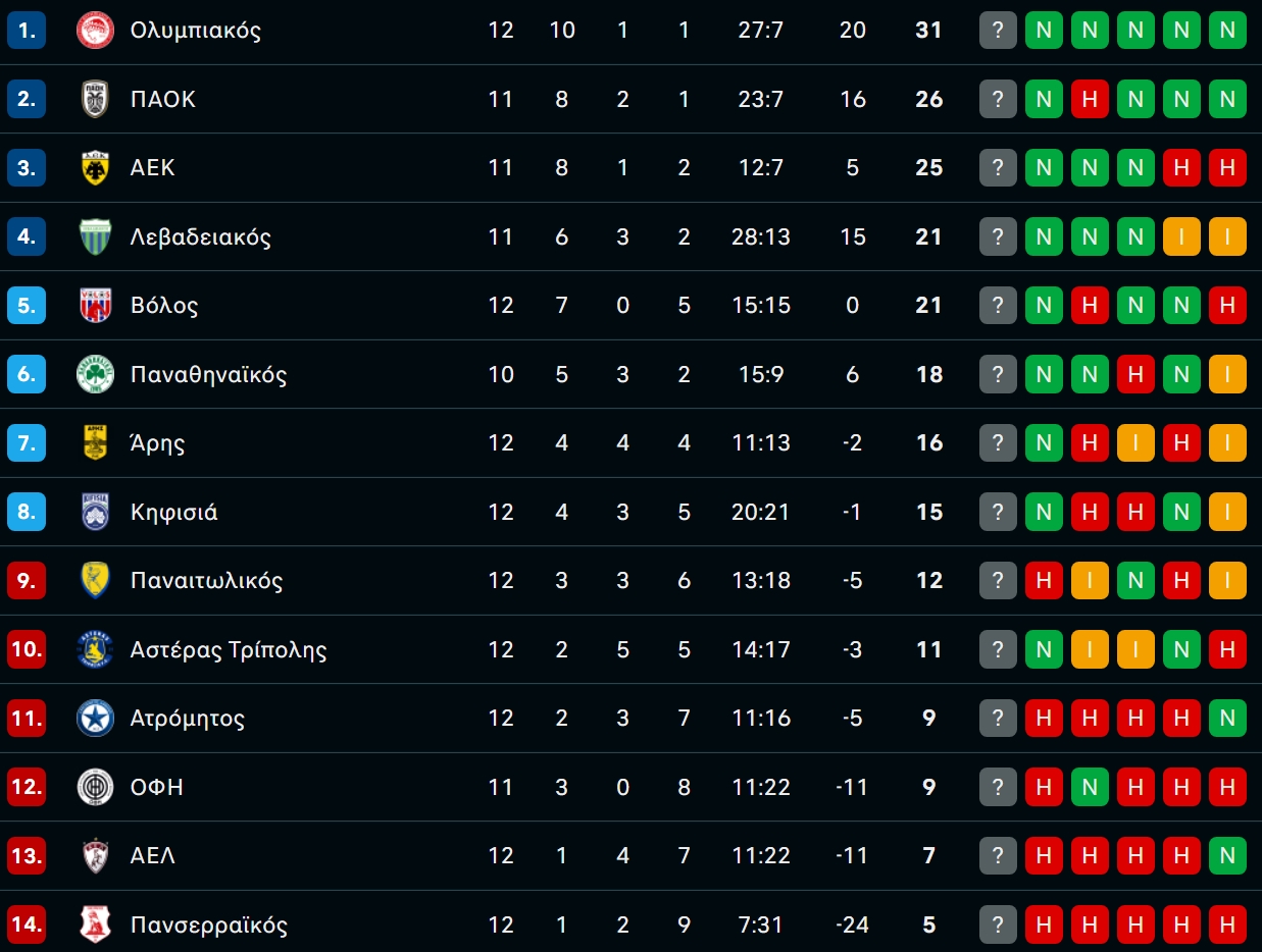 Η βαθμολογία της Stoiximan Super League μετά την νίκη του Ολυμπιακού επί του Παναιτωλικού!