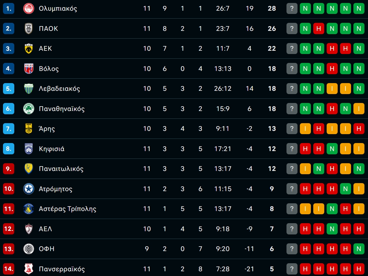 Το πρόγραμμα και τα αποτελέσματα της 11ης αγωνιστικής