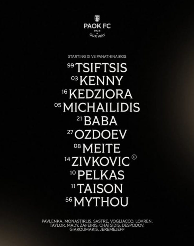 Η ενδεκάδα του ΠΑΟΚ με Παναθηναϊκό