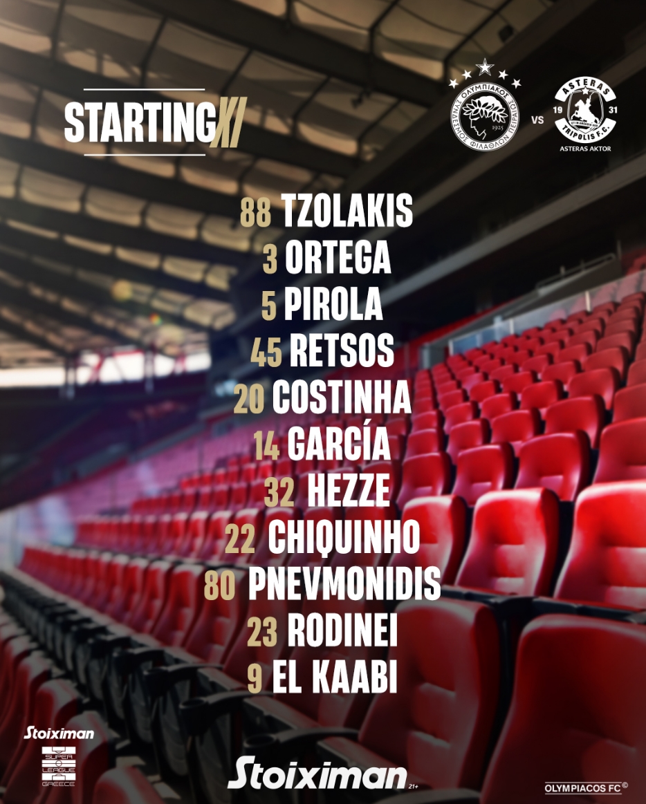 Οι επιλογές του Χοσέ Λουίς Μεντιλίμπαρ για την πρεμιέρα του Ολυμπιακού στη Stoiximan Super League, απέναντι στην Αστέρα AKTOR.