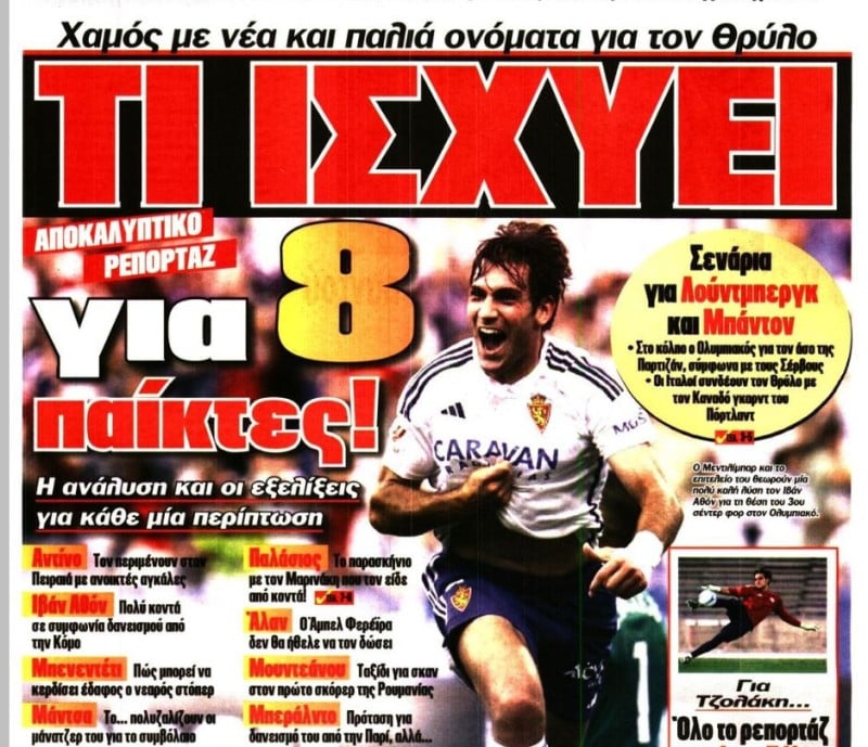 Στο σημερινό του φύλλο ο “Κόκκινος Πρωταθλητής” ασχολείται με οκτώ περιπτώσεις, οι οποίες απασχολούν τους Ερυθρόλευκους, αναλύοντας το τι ισχύει με τους Αντίνο, Μάντσα, Αθόν, Μπενεντέτι, Παλάσιος, Άλαν, Μουντεάνου και Μπεράλντο.