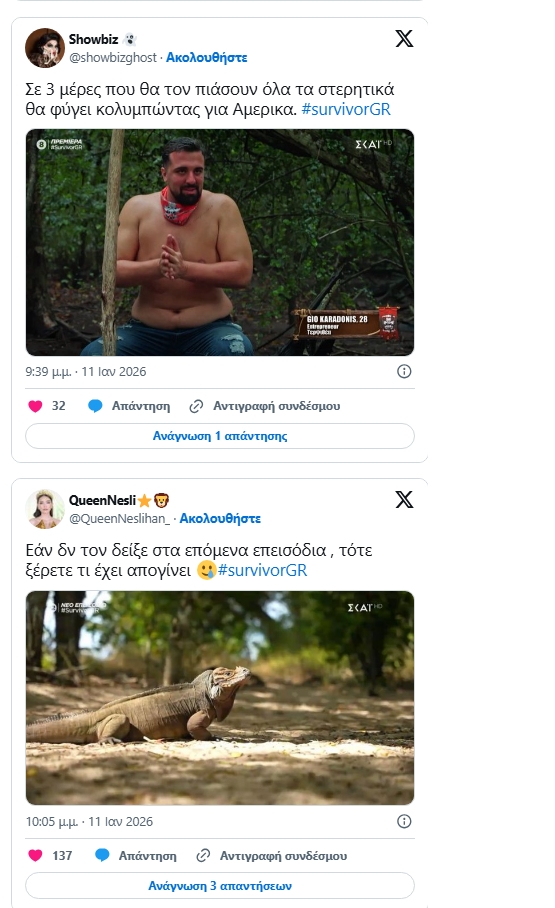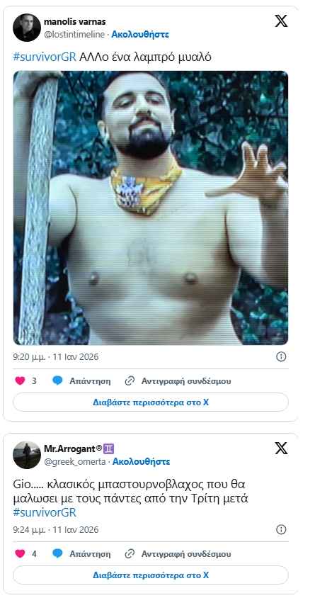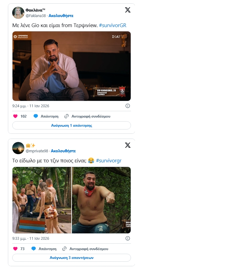 Survivor 2026: Αντιδράσεις στο Twitter/Χ με τον Gio K – «Τον σιχάθηκα! Είναι και από τον Μαρτίκα πιο πα...»
