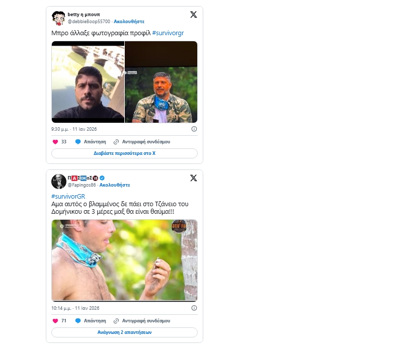 Οι πρώτες αντιδράσεις του Χ για το Survivor 2026